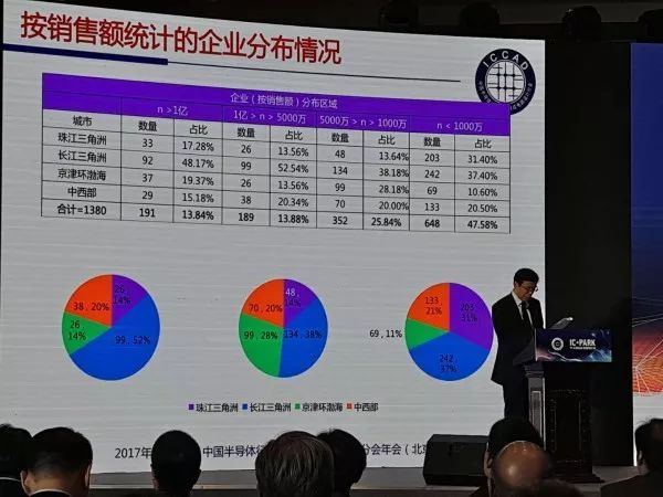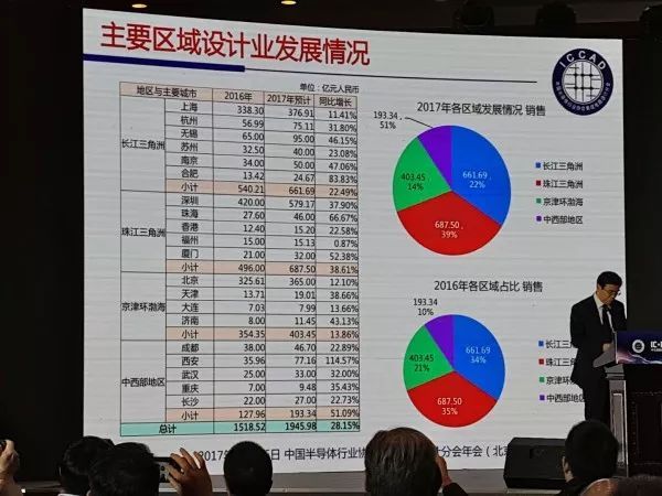 芯片設(shè)計(jì)企業(yè)數(shù)量趨于穩(wěn)定,統(tǒng)計(jì)表明,全國(guó)共有約1380家設(shè)計(jì)企業(yè),比去年的1362家多了18家,總體變化率不大。設(shè)計(jì)業(yè)銷售上,2017年全行業(yè)銷售預(yù)計(jì)為1945.98億元,比2016年的1518.52億元增長(zhǎng)28.15%全國(guó)來(lái)看主要區(qū)域設(shè)計(jì)業(yè)發(fā)展情況,長(zhǎng)三角、珠三角和京津環(huán)區(qū)域依舊排名前三,中西部地區(qū)也在迅速成長(zhǎng)中。