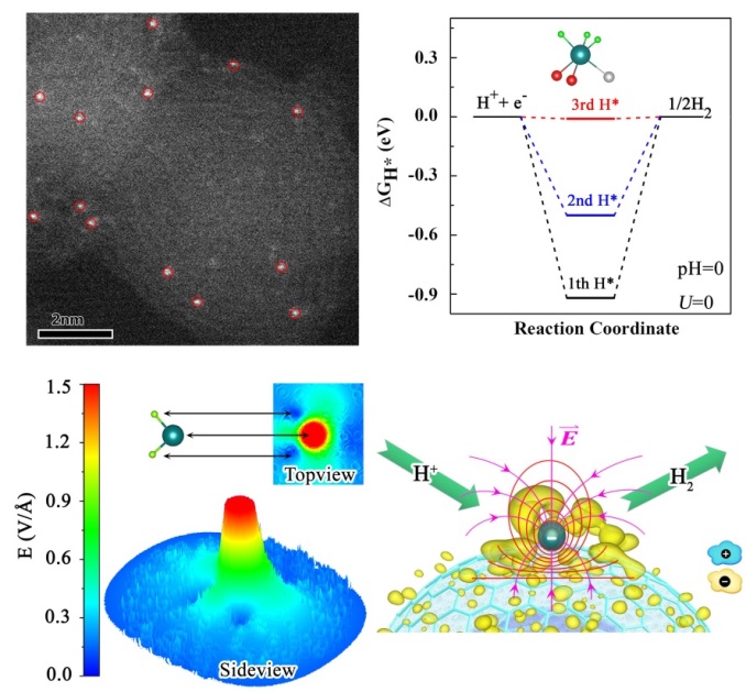 近日,中國(guó)科學(xué)技術(shù)大學(xué)國(guó)家同步輻射實(shí)驗(yàn)室教授宋禮和合肥微尺度物質(zhì)科學(xué)國(guó)家研究中心教授江俊合作,在低鉑(Pt)負(fù)載催化劑設(shè)計(jì)及其電化學(xué)析氫性能研究方面取得進(jìn)展,揭示了局域電場(chǎng)效應(yīng)對(duì)HER反應(yīng)動(dòng)力學(xué)過(guò)程的影響。相關(guān)成果以Atomically dispersed platinum supported on curved carbon supports for efficient electrocatalytic hydrogen evolution 為題發(fā)表在國(guó)際雜志《自然-能源》(Nature Energy)上。