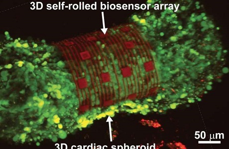 多年來,電生理學測量只能在二維組織培養(yǎng)皿中培養(yǎng)的細胞上完成。但現(xiàn)在,這些驚人的電生理學技術(shù)可以應(yīng)用于三維結(jié)構(gòu)。研究人員表示,其創(chuàng)建的三維自卷生物傳感器陣列可探索源自心肌細胞的誘導多能干細胞的電生理學,研究心臟組織再生和成熟,可用于治療心臟病發(fā)作后的受損組織或開發(fā)治療疾病的新藥。