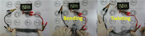 圖3. MoS2/Ti3C2 MXene不同狀態(tài)下驅動電子器件的實物圖。