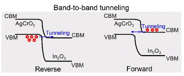 圖3. AgCrO2/In2O3反向二極管反向整流機(jī)制。