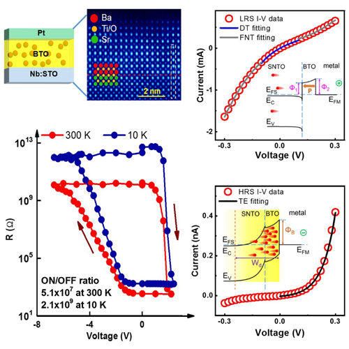 圖1. 高開關比Pt/BaTiO3/Nb:STO鐵電隧穿結設計