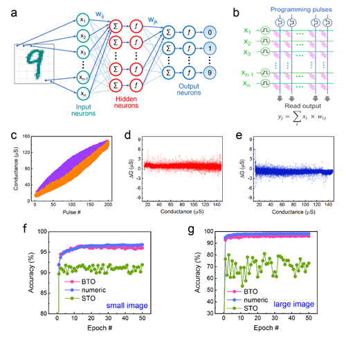 圖3. 鐵電突觸神經網絡對標準圖庫識別的模擬研究