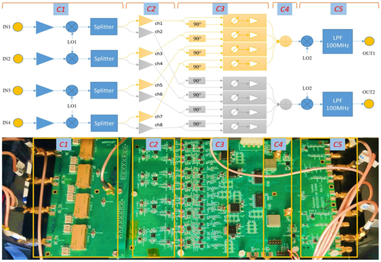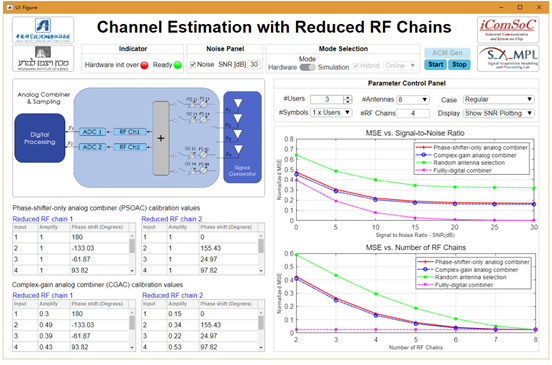 沈陽(yáng)自動(dòng)化所工業(yè)通信與片上系統(tǒng)(iComSoC)團(tuán)隊(duì)與魏茨曼科學(xué)院SAMPL實(shí)驗(yàn)室針對(duì)上述關(guān)鍵問(wèn)題,提出了利用信道二階特性的全連接硬件網(wǎng)絡(luò)方案以實(shí)現(xiàn)射頻鏈路的壓縮,進(jìn)而極大地降低了硬件網(wǎng)絡(luò)配置的復(fù)雜度。以信道估計(jì)為優(yōu)化準(zhǔn)則,團(tuán)隊(duì)給出了噪聲條件下的全連接復(fù)增益硬件網(wǎng)絡(luò)配置的理論最優(yōu)解,并通過(guò)提出多自由度的交替迭代優(yōu)化算法,實(shí)現(xiàn)了逼近理論最優(yōu)解的高性能全連接移相器硬件網(wǎng)絡(luò)配置。團(tuán)隊(duì)進(jìn)一步搭建了實(shí)現(xiàn)相關(guān)理論與算法的硬件原型系統(tǒng),在實(shí)際環(huán)境下驗(yàn)證了提出理論與算法的正確性。該成果為5G無(wú)線通信系統(tǒng)的部署提供了有效方案,并以RF Chain Reduction for MIMO Systems: A Hardware Prototype 為題發(fā)表學(xué)術(shù)論文。