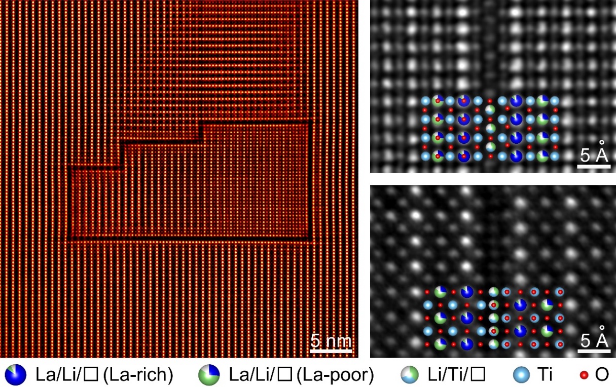 中國科學技術大學教授馬騁課題組在鋰電池固態(tài)電解質的離子傳輸機理研究中取得新進展。研究者用球差校正透射電鏡直接觀測到了一種奇特的非周期性結構。該結構盡管只有一個原子層厚,但卻能對鋰離子的傳輸產生顯著影響,從而成為除了晶界、點缺陷以外的又一類需要受到固態(tài)鋰電池研究者密切關注的非周期性結構。該研究成果近日以Single-atom-layer traps in a solid electrolyte for lithium batteries 為題發(fā)表在國際學術期刊《自然-通訊》(Nature Communications)上。