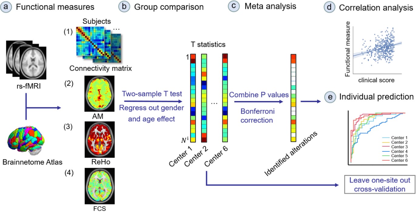 阿爾茨海默病(Alzheimer Disease, AD)是一種不可逆的神經(jīng)退行性疾病。大量基于功能磁共振影像的研究提示AD可能是一種失連接綜合征。但是由于缺乏大樣本、多站點(diǎn)的數(shù)據(jù)集交互驗(yàn)證,迄今為止與AD腦功能活動(dòng)、腦連接的異常模式還沒(méi)有得到清晰一致的結(jié)論,腦功能活動(dòng)是否可以作為AD的早期影像學(xué)標(biāo)記也有待進(jìn)一步驗(yàn)證。