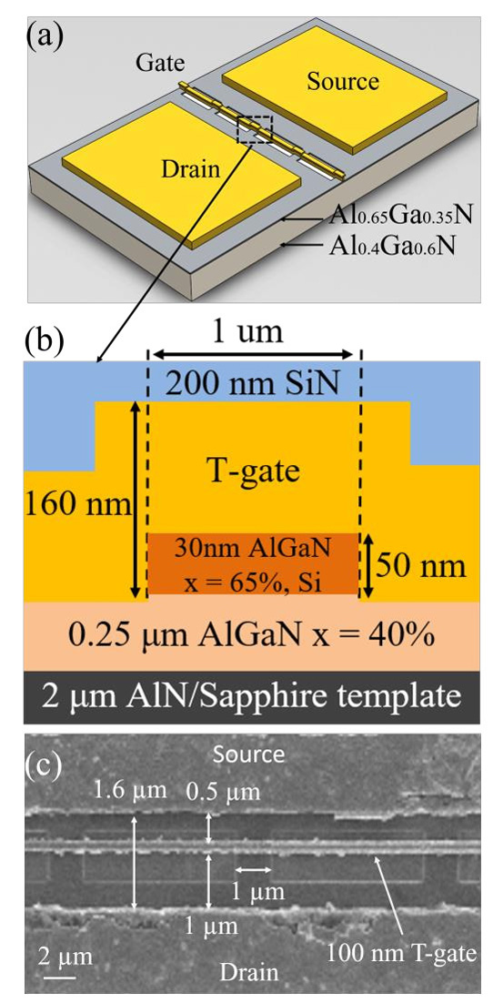 美國(guó)俄亥俄州立大學(xué)和南卡羅來(lái)納大學(xué)報(bào)告了富鋁氮化鋁鎵(AlGaN)溝道晶體管有史以來(lái)最高的射頻(RF)輸出~率密度為10GHz時(shí)為2.7W / mm。
