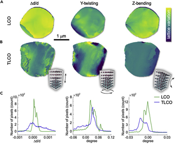 近年來,該研究團隊一直專注于高電壓鈷酸鋰材料技術開發(fā)與基礎科學問題研究。前期研究表明高電壓鈷酸鋰材料改性需要采用表面和體相改性等多種技術相結(jié)合的方法。繼研究團隊去年成功開發(fā)了Ti-Mg-Al痕量元素摻雜改性技術并通過多種實驗方法結(jié)合揭示各摻雜元素的作用機制后(Nature Energy, 2019, 4, 594),最近研究團隊與美國布魯克海文國家實驗室和美國斯坦福線性加速器國家實驗室合作,進一步利用先進同步輻射X射線三維納米衍射成像技術研究了Ti-Mg-Al共摻雜鈷酸鋰材料顆粒結(jié)構(gòu)與材料在充放電過程中反應可逆性的關系。該實驗技術可以觀察到微米級顆粒材料內(nèi)部50nm空間尺度下晶體結(jié)構(gòu)缺陷及其空間分布。研究結(jié)果表明摻雜元素可以調(diào)控鈷酸鋰顆粒內(nèi)部的缺陷及其分布,進而抑制鈷酸鋰材料在高電壓充放電過程中導致材料電化學性能衰減的結(jié)構(gòu)相變。該結(jié)果近日以Hierarchical Defect Engineering for LiCoO2 through Low-Solubility Trace Element Doping為題發(fā)表在Cell子刊Chem上。