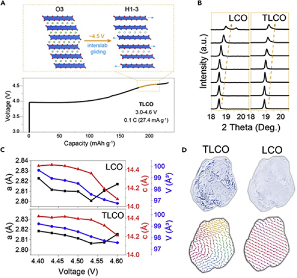 圖4. Ti-Mg-Al摻雜LiCoO2顆粒內(nèi)部缺陷調(diào)控充放電結(jié)構(gòu)相變機制