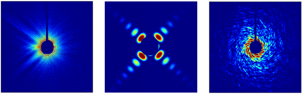 圖1.標準樣品圓孔、方孔及鸚鵡螺圖案的相干衍射圖樣