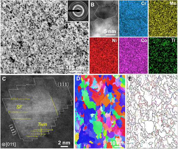 圖1.具有弛豫晶界的納米晶MP35N合金的結(jié)構(gòu)