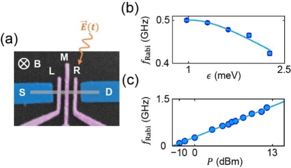 )對自旋比特操控速率的調(diào)控。(c) 自旋比特操控速率隨微波功率增加而增加,最快操控速率超過1.2 GHz。