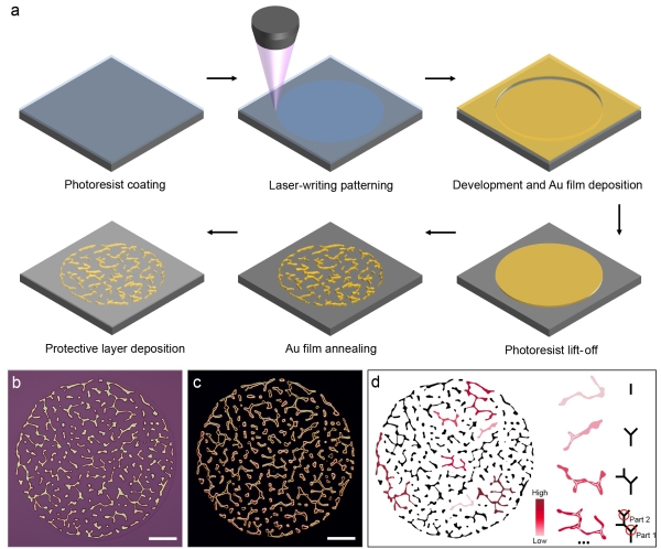 微納加工是納米研究的兩大基礎(chǔ)之一,備受重視。然而,隨著各種新型器件和結(jié)構(gòu)的出現(xiàn),常規(guī)的微納加工方法已無法完全滿足需要,激發(fā)了人們探索更高性價比、更強加工能力的非常規(guī)加工方法。中國科學(xué)院國家納米科學(xué)中心劉前團隊基于自主開發(fā)的新概念激光直寫設(shè)備,開發(fā)出多種非常規(guī)加工方法。近日,該團隊在物理不可復(fù)制功能(PUF)防偽標(biāo)簽研究中取得新進展。相關(guān)研究成果以Random fractal-enabled physical unclonable functions with dynamic AI authentication為題,在線發(fā)表在《自然-通訊》(Nature Communications)上。
