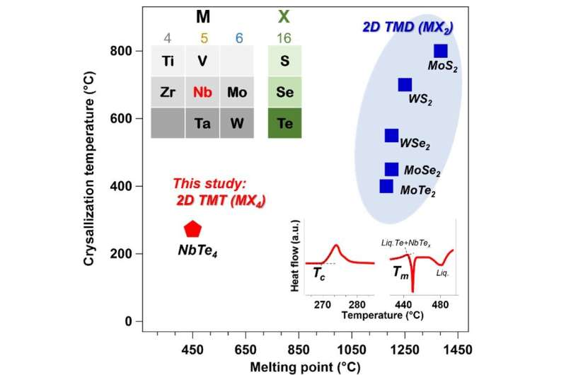 美國東北大學(xué)研究人員驗(yàn)證了濺射技術(shù)在制造大面積二維范德華四硫?qū)倩锓矫娴臐撛谟猛尽@眠@項(xiàng)技術(shù),他們制造并鑒定了一種非常有前途的材料——碲化鈮,它具有約447℃(起始溫度)的超低熔點(diǎn)。這一成果發(fā)表在最近的《先進(jìn)材料》雜志上。