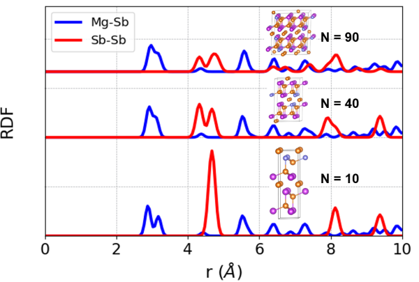 圖4.Mg3Bi2-xSbx(x=0.5)中Mg-Sb和Sb-Sb的徑向分布函數(shù)(RDF)