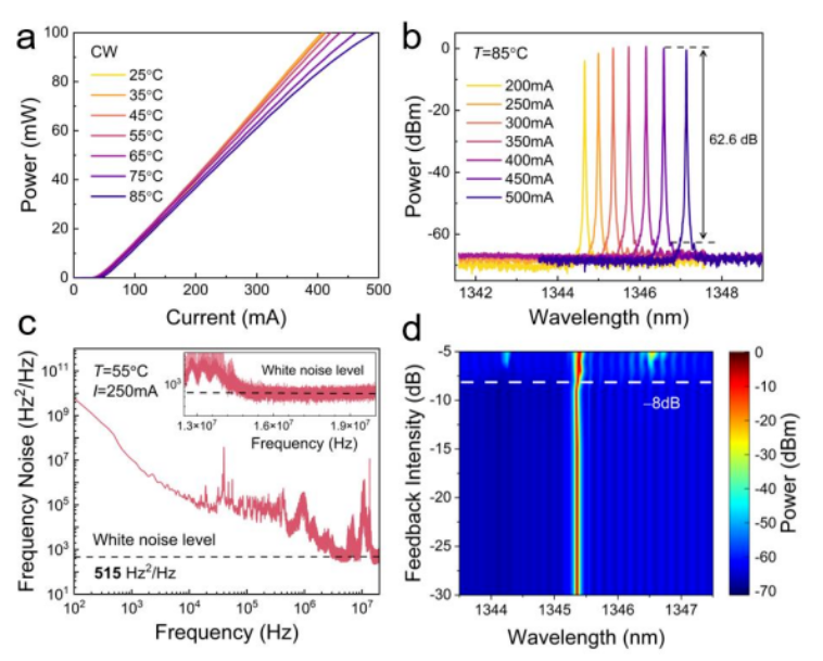 相關研究成果以High-Power, Narrow-Linewidth, and Low-Noise Quantum Dot Distributed Feedback Lasers為題,發(fā)表在Laser & Photonics Reviews上。研究工作得到國家重點研發(fā)計劃和國家自然科學基金等的支持。