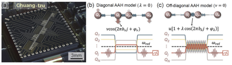 圖1.?“莊子”超導(dǎo)量子處理器以及構(gòu)建對角和非對角AAH模型的脈沖波形序列