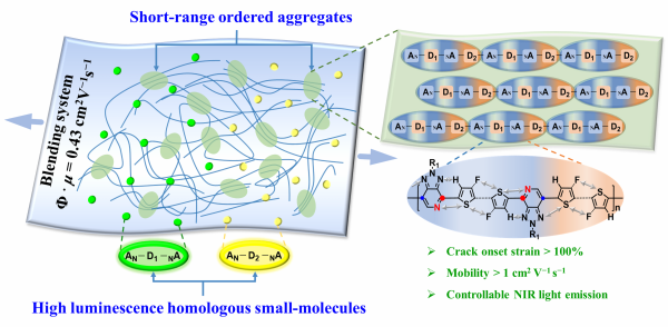 集成本征可拉伸、高遷移率和強(qiáng)發(fā)光的多功能聚合物半導(dǎo)體的設(shè)計(jì)簡圖