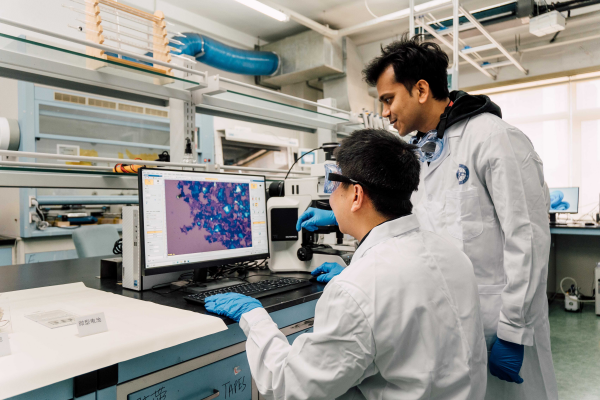 科研人員通過光學顯微鏡觀察制備的過渡金屬碲化物納米片