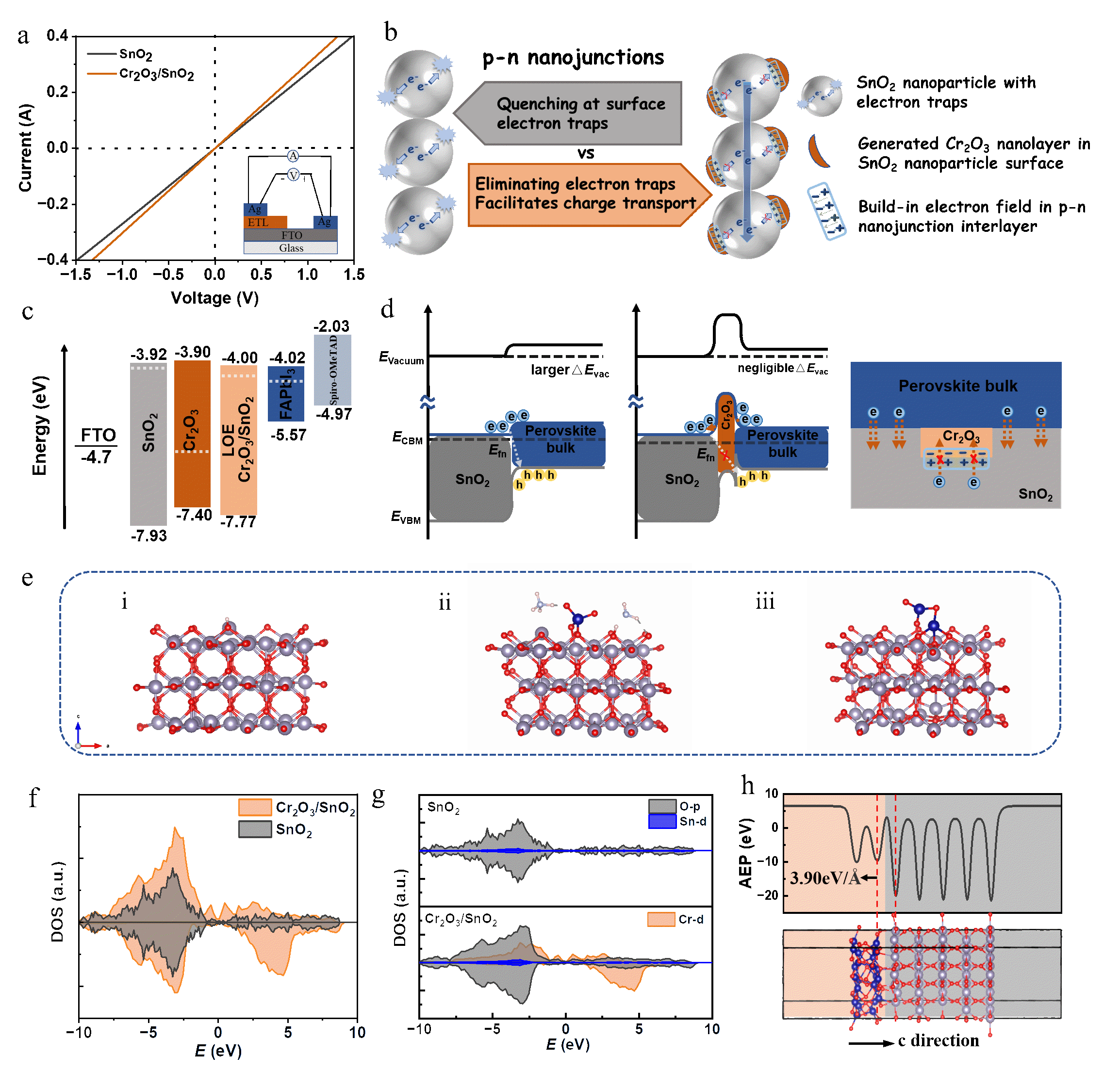 Cr2O3/SnO2薄膜的電導(dǎo)率、電子傳輸示意圖、能級圖以及平均靜電勢等