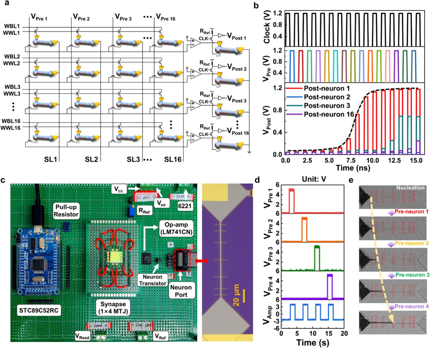 開(kāi)發(fā)的DW-MTJ全自旋神經(jīng)元和神經(jīng)形態(tài)計(jì)算電路仿真及硬件實(shí)驗(yàn)驗(yàn)證