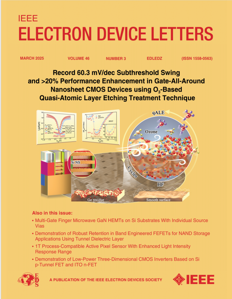 基于本研究成果的論文 “Record 60.3 mV/dec Subthreshold Swing and >20% Performance Enhancement in Gate-All-Around Nanosheet CMOS Devices using O3-based Quasi-Atomic Layer Etching Treatment Technique”(doi:10.1109/LED.2024.3524259)近期發(fā)表在 IEEE Electron Device Letters上,并成功入選成為該期刊的封面論文(圖3)。微電子所研究生蔣任婕和桑冠蕎為該論文的第一作者,張青竹研究員和殷華湘研究員為共同通訊作者。該項研究得到了中國科學院戰(zhàn)略性先導專項(A 類)和國家自然科學基金的支持。