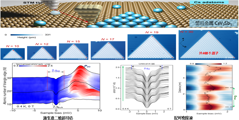 在籠目金屬CsV3Sb5表面上原子級(jí)精準(zhǔn)構(gòu)筑的堿金屬Cs人工量子結(jié)構(gòu)、演生準(zhǔn)二維超導(dǎo)態(tài)和配對(duì)密度波