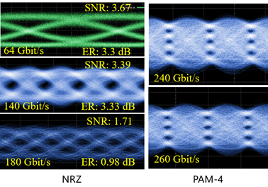 NRZ與PAM-4數(shù)據(jù)傳輸模式下的光眼圖測試結(jié)果