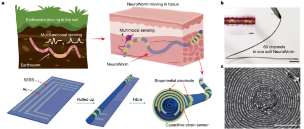 近日,中國科學院深圳先進技術研究院等,成功研發出如頭發絲般纖細、柔軟可拉伸、可自由驅動的神經纖維電極——NeuroWorm(神經蠕蟲),首次提出了腦機接口“動態電極”的新范式,打破了植入式電極的“靜態”傳統,為腦機接口電極的研究與應用開辟了新方向。