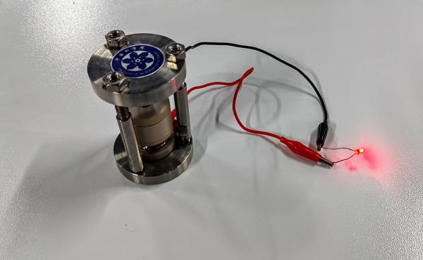 基于上述新型氫負(fù)離子電解質(zhì)材料,該團(tuán)隊(duì)利用經(jīng)典的儲(chǔ)氫材料氫化鋁鈉(NaAlH4)作正極,貧氫的二氫化鈰(CeH2)作負(fù)極,組裝出CeH2|3CeH3@BaH2|NaAlH4這一氫負(fù)離子原型電池。實(shí)驗(yàn)數(shù)據(jù)顯示,該電池正極首次放電容量高達(dá)984 mAh/g,且經(jīng)過(guò)20次充放電循環(huán)后,仍能保持402 mAh/g的容量。團(tuán)隊(duì)進(jìn)一步搭建了疊層電池,把電壓提升到1.9伏,并點(diǎn)亮了黃色LED燈,證明了氫負(fù)離子電池為電子設(shè)備供電的可行性。這標(biāo)志著我國(guó)科研人員實(shí)現(xiàn)了氫負(fù)離子電池從“原理概念”到“實(shí)驗(yàn)驗(yàn)證”的跨越。