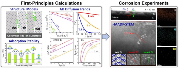 氮化鈦涂層具有優(yōu)異的力學強度、化學穩(wěn)定性和耐磨損性,在多個領域具有應用價值。但是,氯離子易沿各類晶界入侵,導致氮化鈦涂層腐蝕加速甚至涂層結構失效。同時,氯離子在不同晶界上的穩(wěn)定性和擴散規(guī)律尚不清晰,制約了涂層精準設計和可控制備技術發(fā)展。