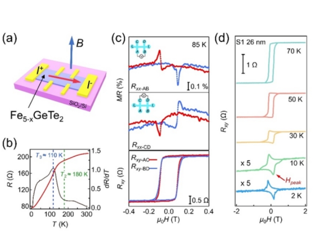 穩(wěn)態(tài)強(qiáng)磁場(chǎng)實(shí)驗(yàn)裝置用戶中國(guó)科學(xué)院合肥物質(zhì)科學(xué)研究院強(qiáng)磁場(chǎng)科學(xué)中心低功耗量子材料研究團(tuán)隊(duì),依托SHMFF磁性測(cè)量系統(tǒng),通過(guò)磁輸運(yùn)測(cè)量,在二維鐵磁材料Fe5-xGeTe2納米片中觀測(cè)到非互易反對(duì)稱磁電阻及非常規(guī)霍爾效應(yīng)。這些新奇磁效應(yīng)使該材料在特定條件下產(chǎn)生額外的反對(duì)稱磁阻,導(dǎo)致其在不同磁場(chǎng)方向下的宏觀電輸運(yùn)特性具...