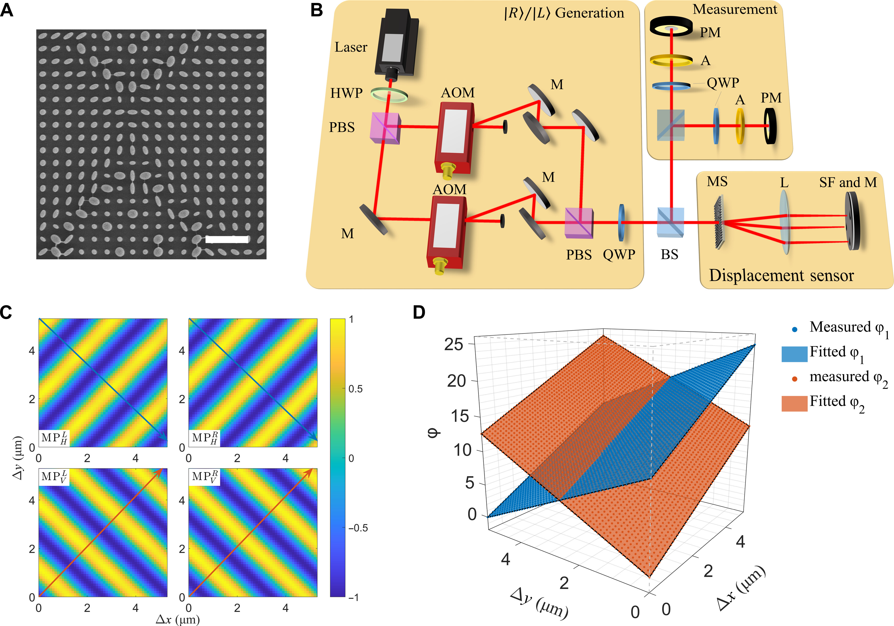 納米級(jí)長(zhǎng)度和位移測(cè)量是光學(xué)精密測(cè)量領(lǐng)域的重要基礎(chǔ)研究課題,在半導(dǎo)體疊對(duì)誤差測(cè)量、精密對(duì)準(zhǔn)與跟蹤等方面具有關(guān)鍵作用。傳統(tǒng)的光學(xué)干涉儀雖然可以實(shí)現(xiàn)納米及亞納米的測(cè)量精度,但系統(tǒng)復(fù)雜、易受環(huán)境干擾。近年來(lái),該課題組基于微納結(jié)構(gòu)光場(chǎng)調(diào)控技術(shù)發(fā)展出一些位移感測(cè)技術(shù),實(shí)現(xiàn)了亞納米的測(cè)量精度。但是,這些一維位...