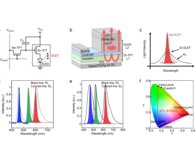 有機發(fā)光晶體管作為集成電流放大功能和發(fā)光功能于一體的新型電致發(fā)光器件,被認為是開發(fā)下一代變革性顯示技術(shù)的理想器件基元。窄光譜電致發(fā)光器件在廣色域顯示、光通信和光診療方面具有重要意義,對實現(xiàn)更逼真的圖像、更大容量的數(shù)據(jù)傳輸和特殊醫(yī)療診斷等起到重要作用。通過設(shè)計合成窄光譜活性材料或引入特殊的光學設(shè)計,有...