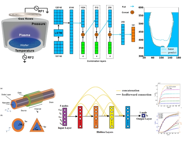 隨著集成電路特征尺寸的不斷微縮,工藝和器件模擬的計(jì)算復(fù)雜度顯著增加,傳統(tǒng)物理建模方法難以滿足大規(guī)模仿真和快速迭代的需求,亟需引入前沿人工智能技術(shù),開發(fā)高效的仿真模型以支撐先進(jìn)工藝參數(shù)優(yōu)化和新型器件設(shè)計(jì)。在刻蝕工藝的仿真加速方面,EDA中心姚振杰副研究員和陳睿研究員開展聯(lián)合攻關(guān),提出一種級(jí)聯(lián)遞歸神經(jīng)網(wǎng)絡(luò)(CRN...