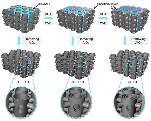 近期,中國(guó)科學(xué)院合肥物質(zhì)科學(xué)研究院固體物理研究所研究員孟國(guó)文和韓方明團(tuán)隊(duì),與美國(guó)特拉華大學(xué)教授魏秉慶合作,在前期基于結(jié)構(gòu)一體化三維互連碳管網(wǎng)格膜的高性能濾波電容器的基礎(chǔ)上,設(shè)計(jì)制備了類似“俄羅斯套娃”結(jié)構(gòu)的多殼層同軸碳管的三維互連陣列,進(jìn)而將其作為對(duì)稱型雙電層電容器的電極,構(gòu)建了新型濾波超級(jí)電容...