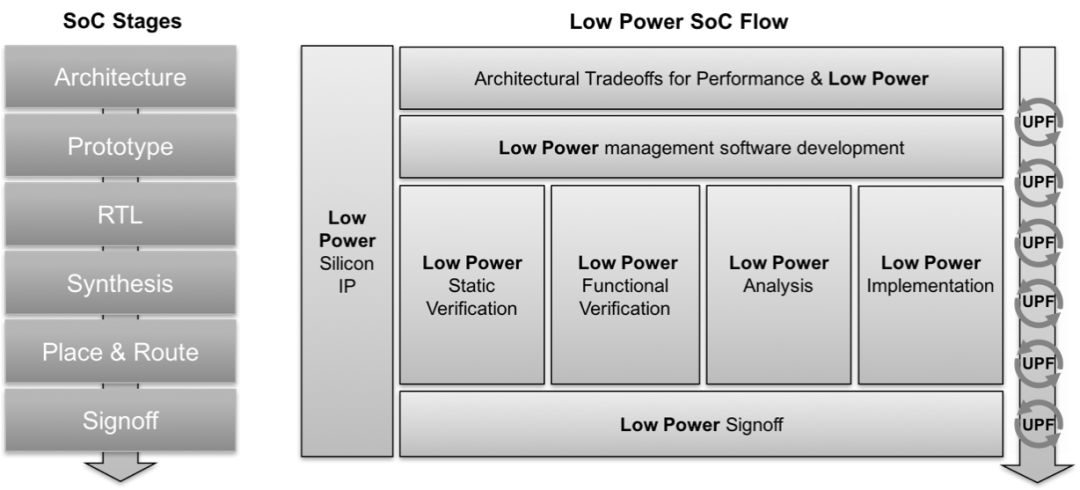 電子工業(yè)已經發(fā)展了廣泛的電源管理技術,并定義了統(tǒng)一電源格式(UPF)來描述一些最常用方法的設計意圖。低功耗半導體設計的成功開發(fā)包括檢查UPF描述,以及在項目的多個階段根據設計驗證UPF。對應至芯片開發(fā)中的指標即為PPA(Performance, Power, Area)當中的Power,開發(fā)者在設計和驗證過程中始終關注這三個重要指標的平衡。