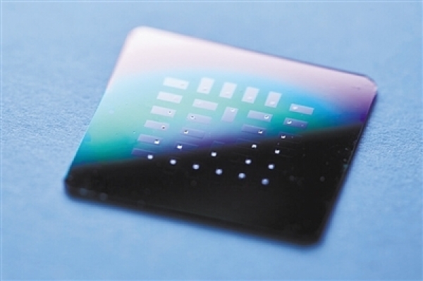 帶有30個獨立葡萄糖微型燃料電池的硅芯片。圖片來源:《先進材料》