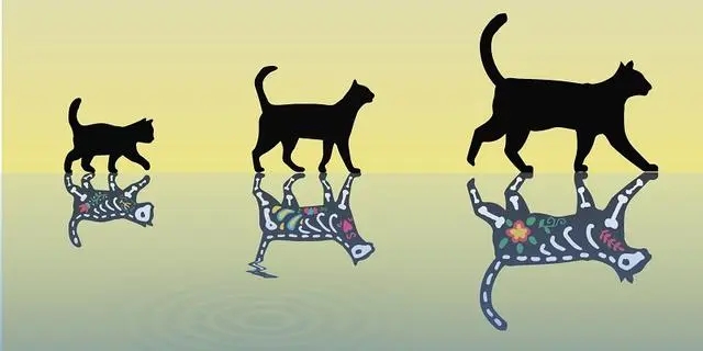 鐳的衰變存在幾率,如果鐳發(fā)生衰變,會觸發(fā)機關打碎裝有氰化物的瓶子,貓就會死;如果鐳不發(fā)生衰變,貓就存活。根據(jù)量子力學理論,由于放射性的鐳處于衰變和沒有衰變兩種狀態(tài)的疊加,貓就處于死/活兩種狀態(tài)的疊加。這只既死又活的貓就是所謂的“薛定諤的貓”。