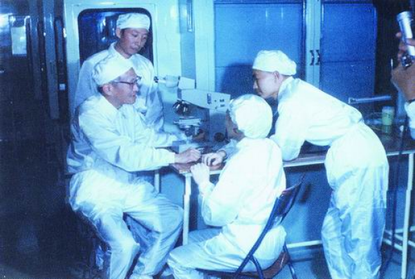 1979年,王守武(左一)與研究人員在超凈線工作。?