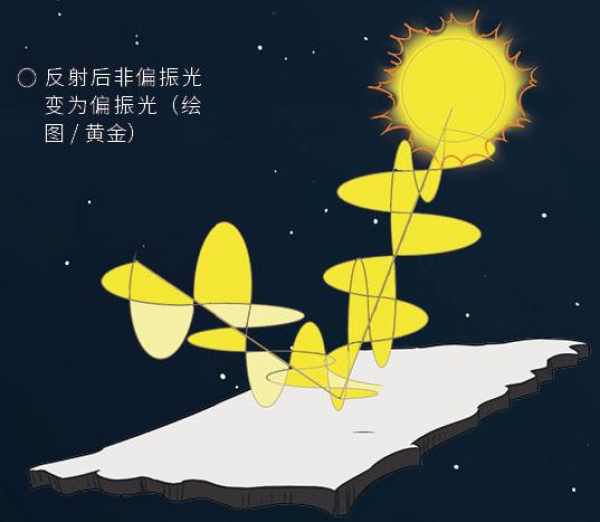 這是由于當(dāng)光線從空氣進(jìn)入水中或其他介質(zhì)中時,會發(fā)生折射和反射,導(dǎo)致光線的偏振方向發(fā)生改變。當(dāng)自然光投射到水面上時,反射光的偏振方向較大部分為平行于水面方向振動。因此,戴上透光軸豎直的偏振鏡,就能一定程度上阻擋這部分水面反射光,讓包含水下景物信息的折射光等更易被人眼覺察到,就能夠更加清晰地看到水中的景象,這體現(xiàn)了“偏振”看世界的獨特作用。