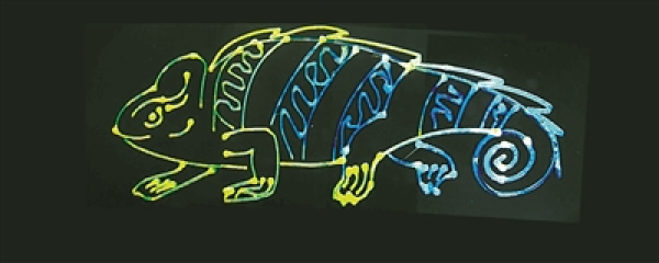 受變色龍變色能力的啟發,研究人員開發了一種動態且可持續的變色墨水。圖為研究團隊創建的3D打印變色龍插圖。圖片來源:伊利諾伊大學厄巴納-香檳分校。