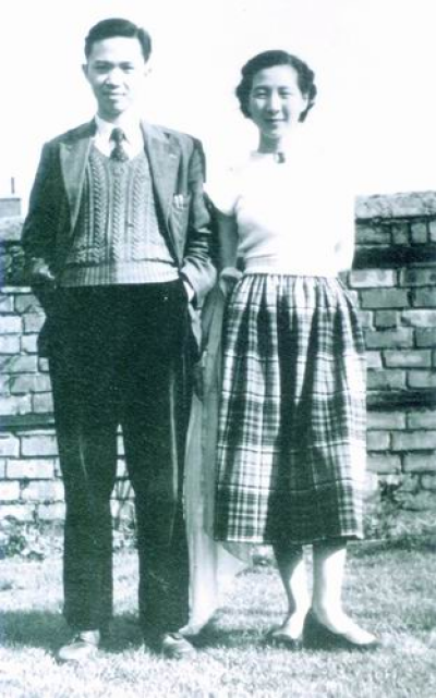 1950年在英國愛丁堡夏培肅和丈夫楊立銘合影 。