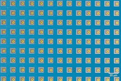硅片上的微孔電極陣列(部分)。圖片來源:美國哈佛大學