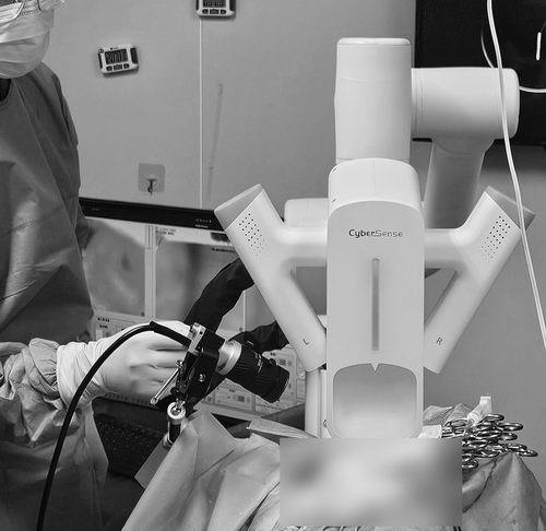 研究人員使用CyberSense開展獼猴大腦皮層植入手術(shù)。自動(dòng)化所供圖