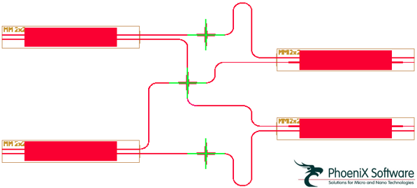 圖1. OptoDesigner中實(shí)現(xiàn)的90度混合耦合器版圖設(shè)計(jì)