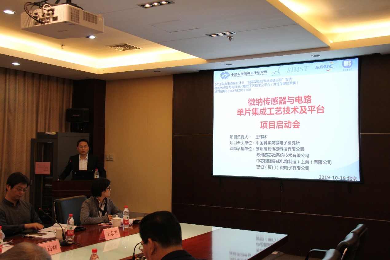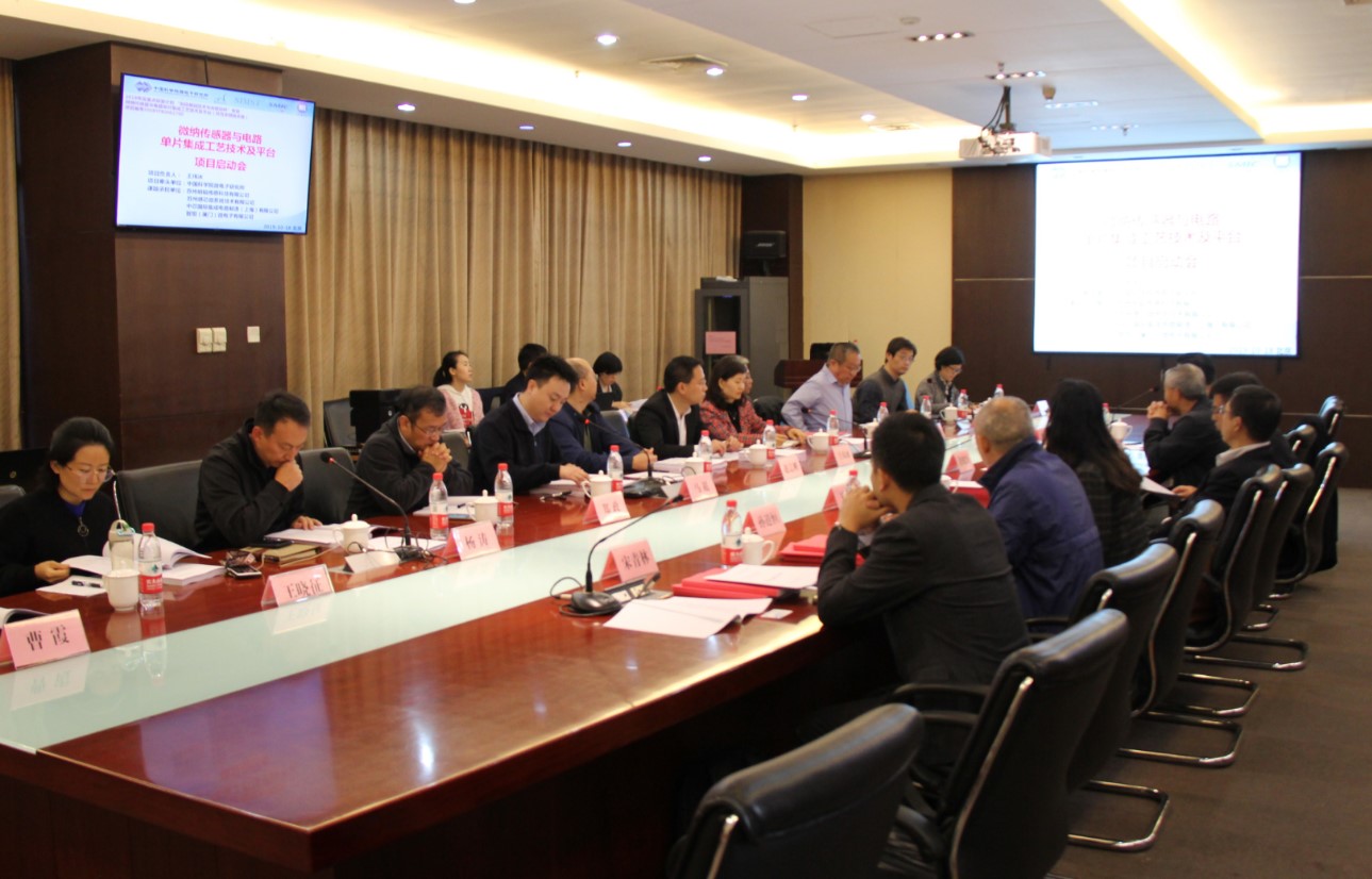 10月18日,國家重點研發計劃“制造基礎技術與關鍵部件”重點專項“微納傳感器與電路單片集成工藝技術及平臺”項目啟動會在微電子所召開。工信部產業促進發展中心領導、項目責任專家、項目咨詢專家組成員、微電子所所領導、項目牽頭單位及項目組科研骨干參加了會議。?