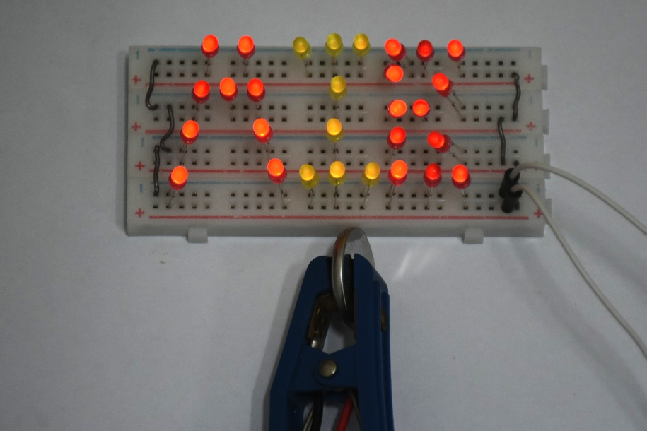 一顆鎂基雙離子電池扣式電池點(diǎn)亮29個(gè)并聯(lián)的LED燈泡
