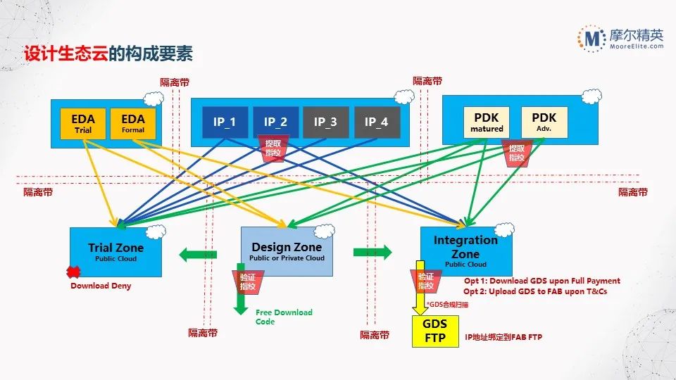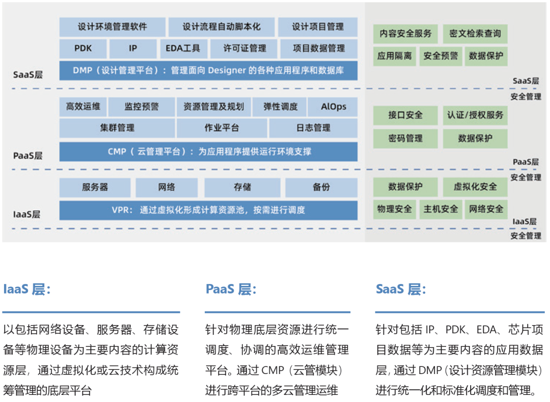 設(shè)計、EDA、IP、PDK在云計算平臺上可以各自成云,彼此安全隔離,數(shù)據(jù)共享可追溯,上傳下載加密,形成安全高效的生態(tài)設(shè)計環(huán)境。