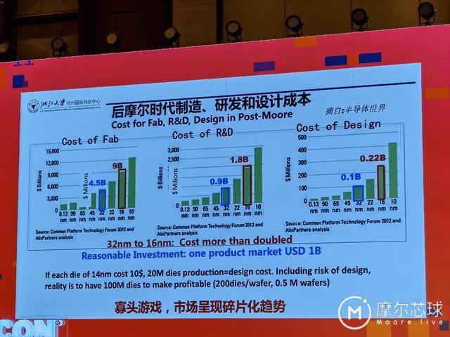 “雖然芯片的難道和成本一直增加,但趨緩的摩爾定律給追趕者帶來機(jī)會(huì)”,吳漢明接著說。